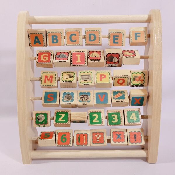 Permainan ini terdiri dari 36 kepingan kayu yang disablon alfabet dan gambar. Disusun pada kayu yang dibingkai. Bisa didirikan. Kepingan kayu disablon dengan teknologi digital LedUV sehingga menghasilkan gambar berkualitas dan aman bagi anak. Berfungsi untuk memperkenalkan alfabet dan belajar membaca bagi anak. Bersertifikat SNI .